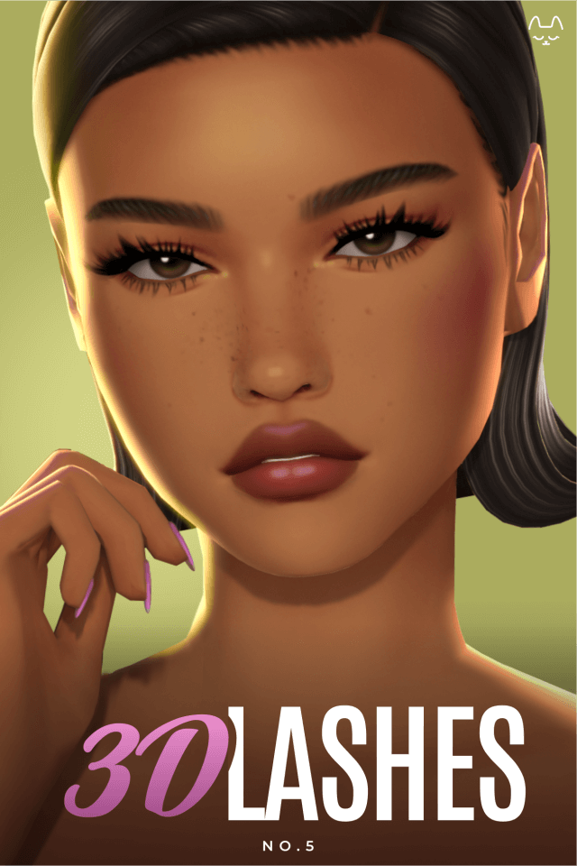 3D Lashes No.5 A new set of lashes featuring an improved, more curved mesh and five style variations to choose from. ✨ They also blend better with the default EA lashes, making them less noticeable if you don’t use a default eyelash remover! Not compatible with laptop mode Base game compatible F, T-E