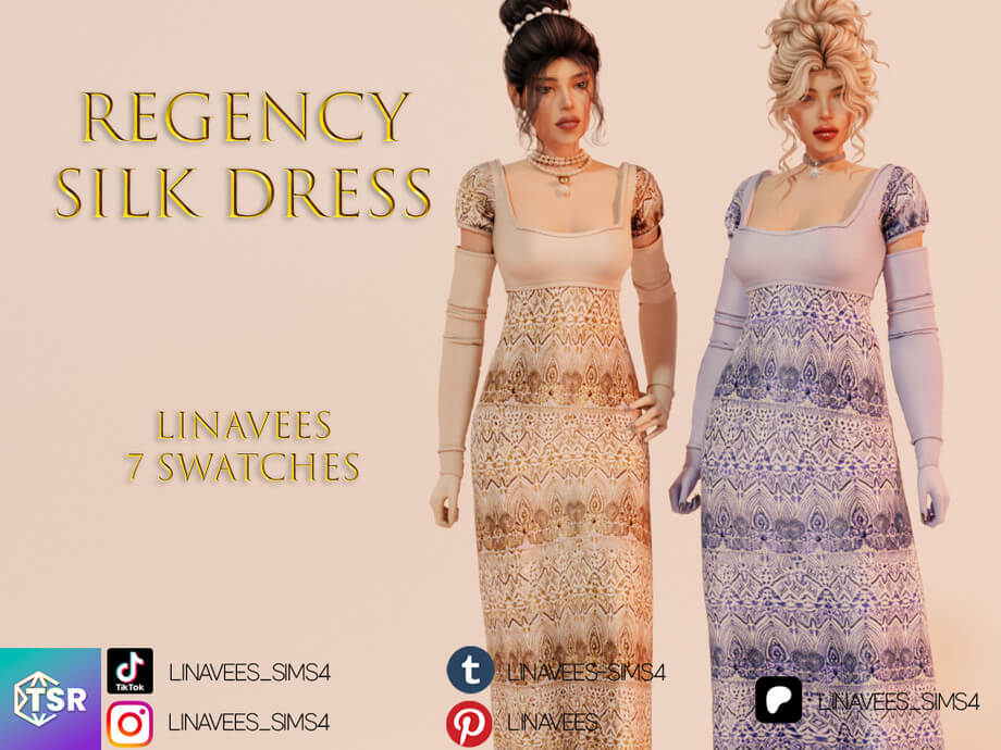 DIANA – REGENCY SILK DRESSNew Mesh ALL LODS Teen to elder 7 colors Custom thumbnail Base game compatible Happy simming!
