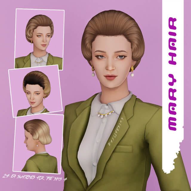 MARY HAIR New mesh Base game compatible 24 EA colours Hat compatible Hair pins found in hats All LODs Custom Thumbnail