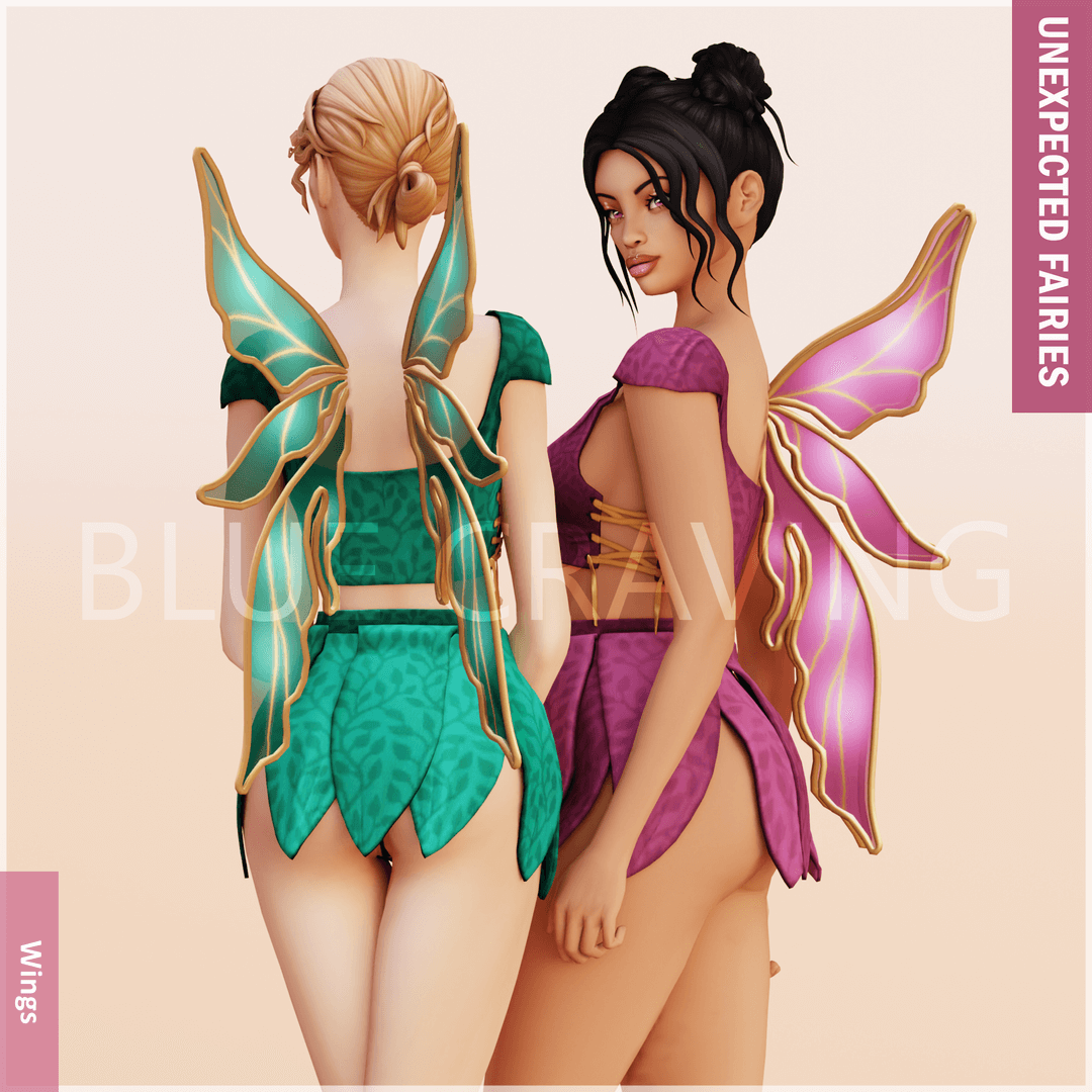 Unexpected Fairies – Wings Wearable on ring spot ♥ Base game compatible, but not usable as fairy wings for the new extension. At the moment i didnt succeed to figure out how to make such custom meshes work with the sims multi colors selection.